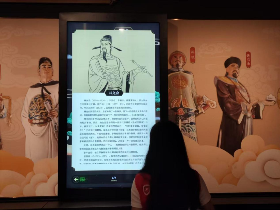 移步至多媒体展示区,沉浸式影片生动还原妈祖生平故事。从林默降生的传奇,到行善济世的点滴,再到升天成圣的信仰传承,光影交织间,妈祖“立德、行善、大爱”的精神内核,愈发清晰地烙印在队员们心中。大家围站在一起,专注的神情里,是对这份跨越千年文化传承的敬重与思索——妈祖文化何以历经岁月而不衰?答案或许就藏在这故里的一景一物、一史一事中,藏在世代相传的信仰与践行里。