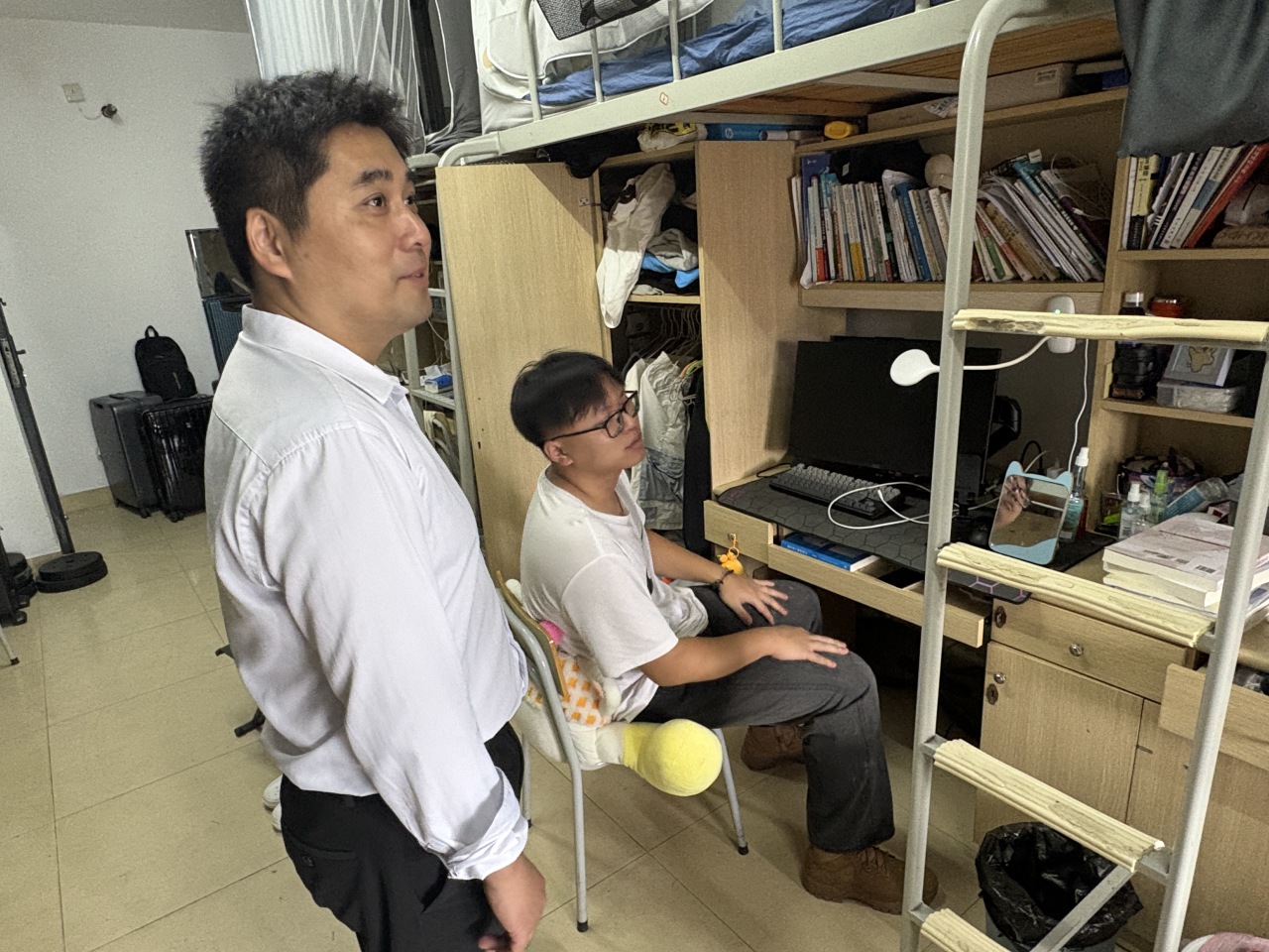 除了与同学们谈心,导师们还对宿舍进行了细致的安全检查。重点查看宿舍电路是否存在隐患、有无违规使用电器的情况,检查消防设施是否完好、门窗锁具是否正常。对于发现的问题,导师们现场向同学们指出,并指导大家及时整改。同时,反复向同学们强调安全用电、防火防盗的重要性,让安全意识深深扎根在每一位同学心中。
