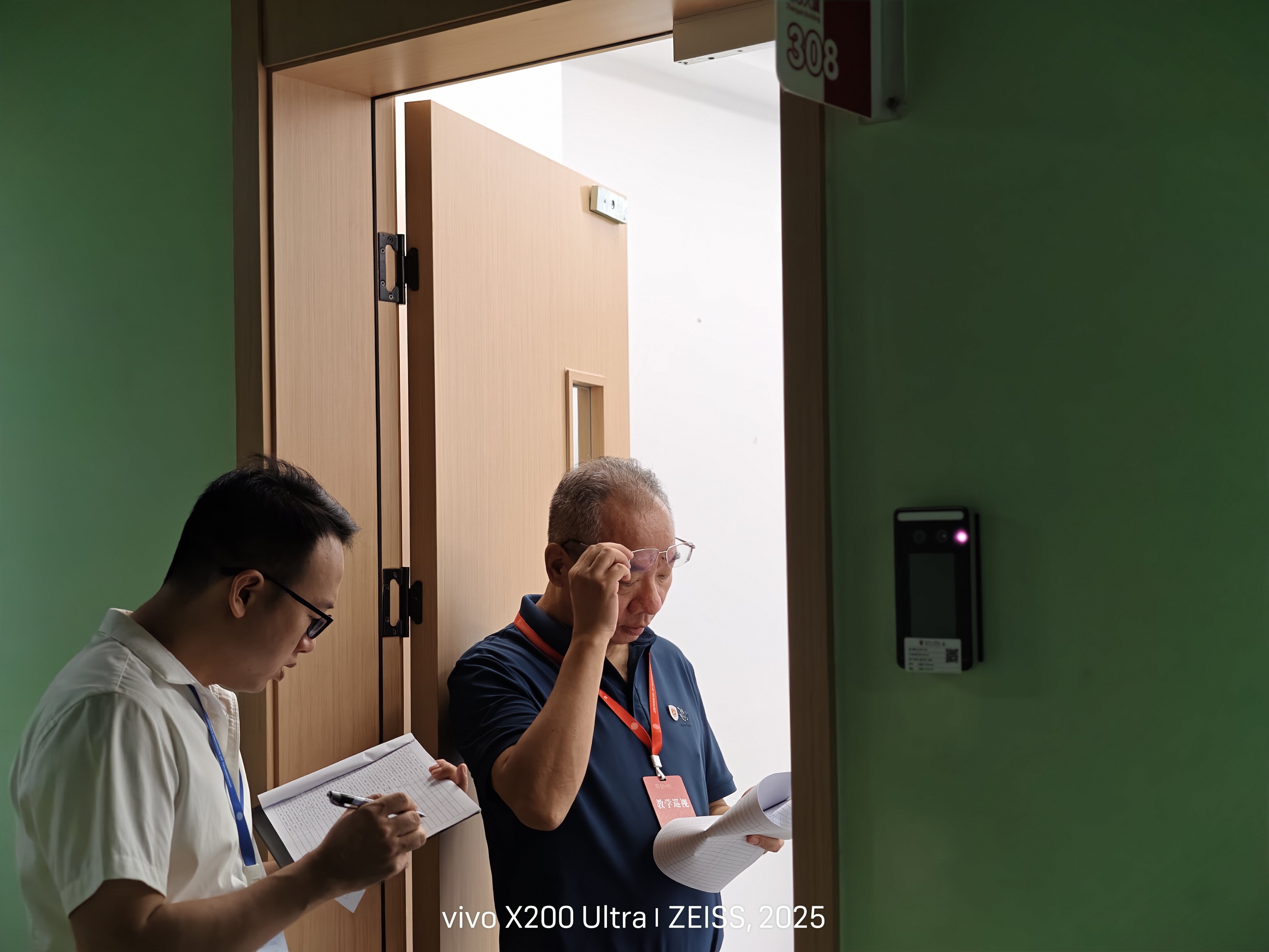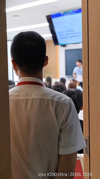 查课过程中,老师们专注的神情与认真的姿态格外醒目。他们在走廊里仔细观察、交流,不放过任何细节,从教学场地设施到教学前期筹备等方面逐一查看,以严谨的工作作风,为新学期教学秩序的良好运行筑牢基础。