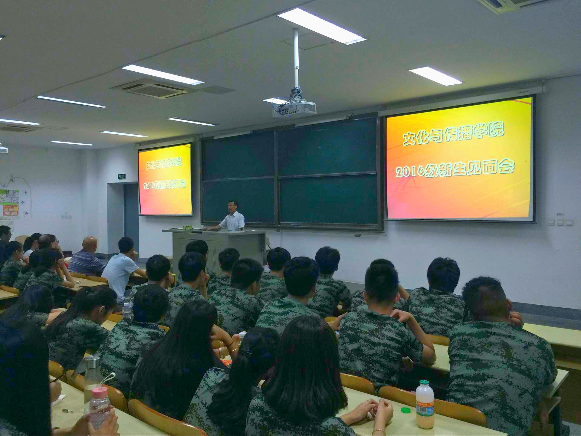 本次会议由友容书院院务主任陈伟老师主持,由苏涵院长对新生发表了讲话。在本次讲话中院长用亲生经历勉励大家,告诫新生应该从大一开始便要树立目标、明确自己毕业后的工作方向,为自己的大学四年提前做好规划,不让大学四年荒废而过。公共传播系负责人朱丹青老师、艺术系负责人翁武文老师以及音乐系负责人邵燕老师也从各专业的角度分析了各专业学习的难点及其今后应有的学习态度。本次大会不但对文化与传播学院2016级新生今后的教学方向以及学习要求做出了总结性的指导,还明确指出我院的目标是培养更多的应用型人才,即知识技能与动手能力并重。