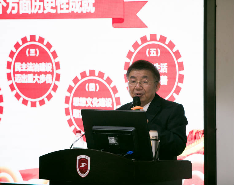 课上,林建华书记结合自身丰富的经验和学生切身实际,不照本宣科,用生动幽默、学生易于接受的语言解读党的十九大报告,现场气氛严肃又不失活泼,学员们受益匪浅。