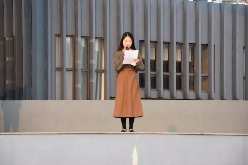 升旗结束后,16级传播学3班的肖梅芳同学做了以爱国为主题的国旗下的讲话。肖梅芳同学说,天下兴亡,匹夫有责。当代青年人尤其是大学生群体,必须以身作则,将高尚的爱国情操融入到自身的价值观念里,并始终坚持把爱国主义思想贯彻在自身的学习工作和生活中去,正如十九大所提及的内容,青年人要勇立时代潮头,接力奋斗中国之梦,用爱国主义的坚定思想激励青年一代乘风破浪,勇往直前!