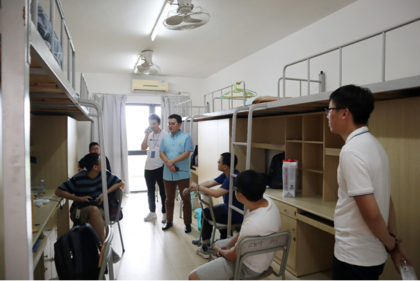 在友善书院院长刘岩民的领导下迎新工作秩序井然,并为在场的家长学生们解疑答惑。友善书院副院长雷雨考察新生宿舍情况,询问新生需求,解疑答惑,及时化解问题。
